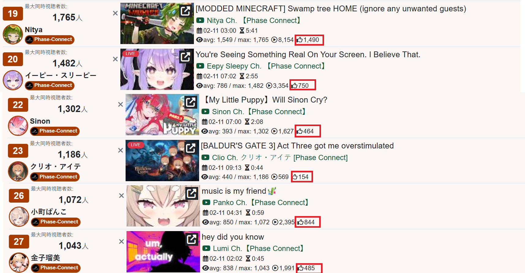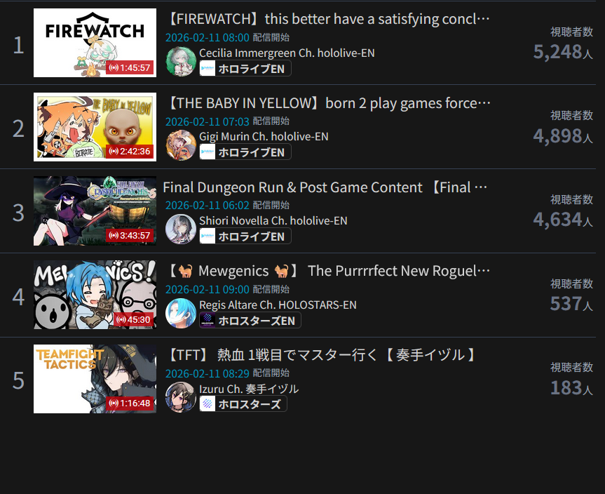*GENERAL NUMBERFAG SITES*>https://playboard.co/en/>http://ikioi-ranking.com/>https://vrabi.net/>https://live-ranking.userlocal.jp/vtuber-rankingHololive sites>https://www.hololyzer.net/youtube/index.html>https://trackholo.live/en/>https://holo-spotify-stats.jirikunes.eu/Twitch>https://sullygnome.com/>https://twitchtracker.com/>https://stats.roki.sh/>https://streamscharts.com/