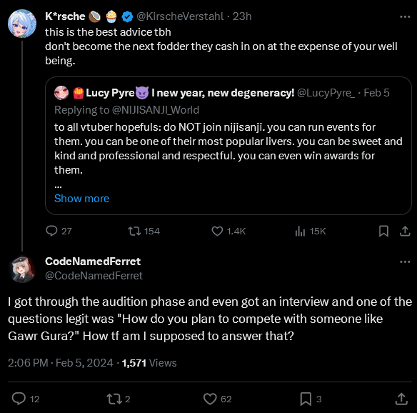 >>109367498They're condemned to irrelevancy unless they can grift onto somebody else who is doing something interesting. In this case, it's vtubing