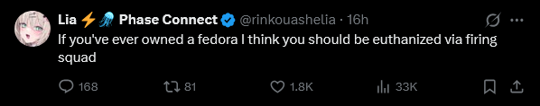 >>109371409For this particular drama, sure, but fishman has painted a target on Phase with that stupid statement >>109371342Now, every time the girls say something edgy, retarded twitter trannies will use it to try to cancel the girls going forward