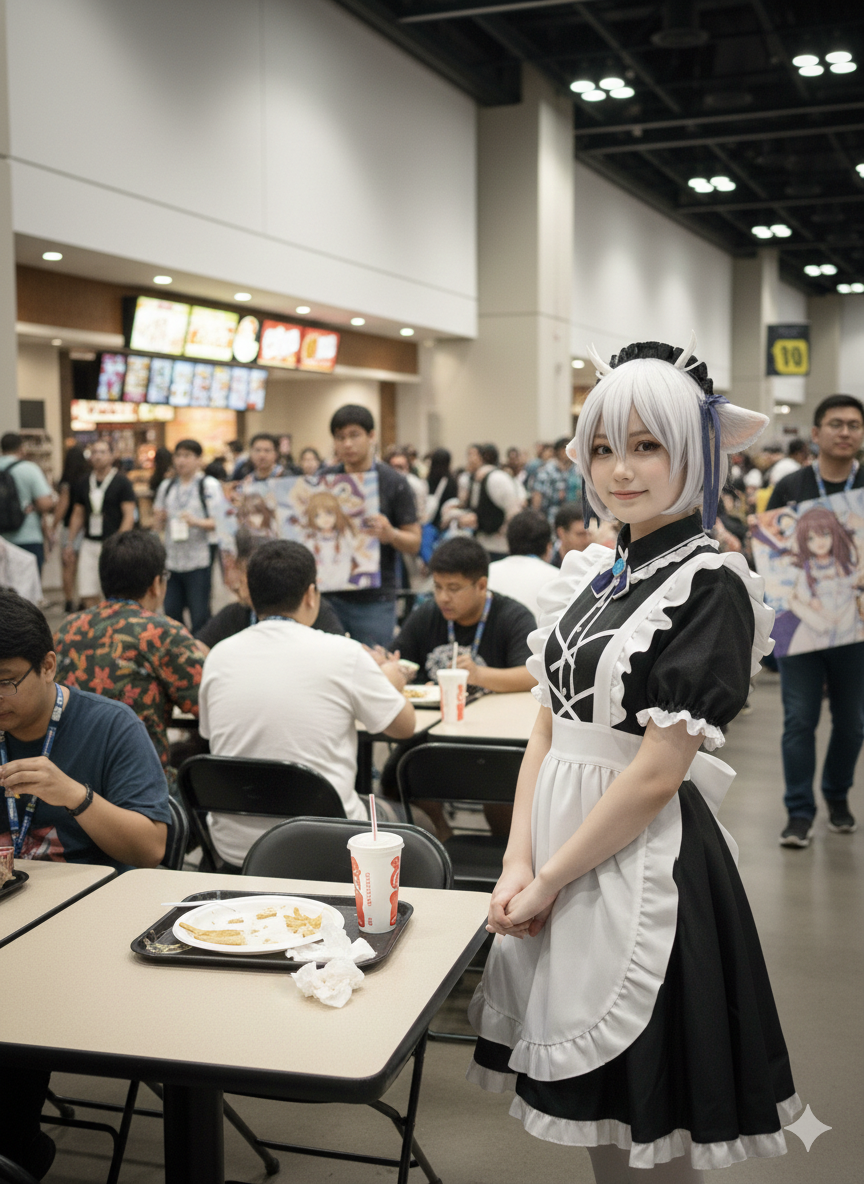 >not bad for con food, right?>yknow, you really didnt have to pay for mine>I didnt mean for that to sound so ungrate!>thank you so much for the lunch!>I feel so refreshed to hit the booths again>I think I know what merch I want