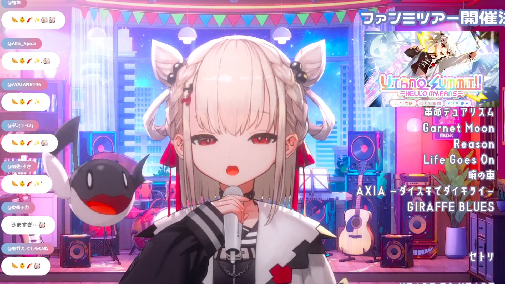 Song Frames and Special EventsShiratama Utanohttps://www.youtube.com/watch?v=TyajhZA0M64Tsukishiro Cecil Back from Treatment Song Framehttps://www.youtube.com/watch?v=uGZ8yX_NtdYNishizono Chigusa x Kitaouji Hisui Valentines Karaokehttps://www.youtube.com/watch?v=phvfKTb8Q9sFumino Tamaki Valentines Karaoke Shortshttps://www.youtube.com/watch?v=yfE_5sYhf-cMunmosh 700 likes Acoustic Guitar Endurance framehttps://www.youtube.com/watch?v=uwN7DzdU08EOtodama Hibiku Acoustic Guitar Shortshttps://www.youtube.com/watch?v=7ksf_77P7-kSakusu Mayo Street Sax Sessionhttps://www.youtube.com/watch?v=QE3ePbLPNxQAmon Yuukuhttps://www.youtube.com/watch?v=15Dmd8ATFI8Otohane Larahttps://www.youtube.com/watch?v=NM5MLtCeElUKanzaki Meisa J-Rock Karaokehttps://www.youtube.com/watch?v=3GuOMxo8isc