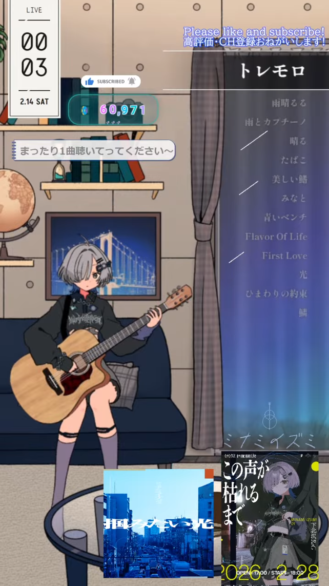 Valentine's Song Frames and Special EventsOtodama Hibiku New Outfit Revealhttps://www.youtube.com/watch?v=EERjc5R9pacKannagi Tenrihttps://www.youtube.com/watch?v=0oLsEGp3e0QItigori Enahttps://www.youtube.com/watch?v=4-pcyaYEJKUHiiragi Rio shortshttps://www.youtube.com/watch?v=GvIC7ywyun0Akano Byakua shortshttps://www.youtube.com/watch?v=AQ3KhOhxLjkMiiro Sea shortshttps://www.youtube.com/watch?v=FZkDIrpmT1gSakusu Mayo congrats on successful LovechoV? sax session eventhttps://www.youtube.com/watch?v=CK6kI5FrZhIKitsunebana Ten congrats on 10K and wants this song frame to be judgedhttps://www.youtube.com/watch?v=rrZbo8lFG9UMelaakaru BAR KARAOKEhttps://www.youtube.com/watch?v=AlkWF8tYR80