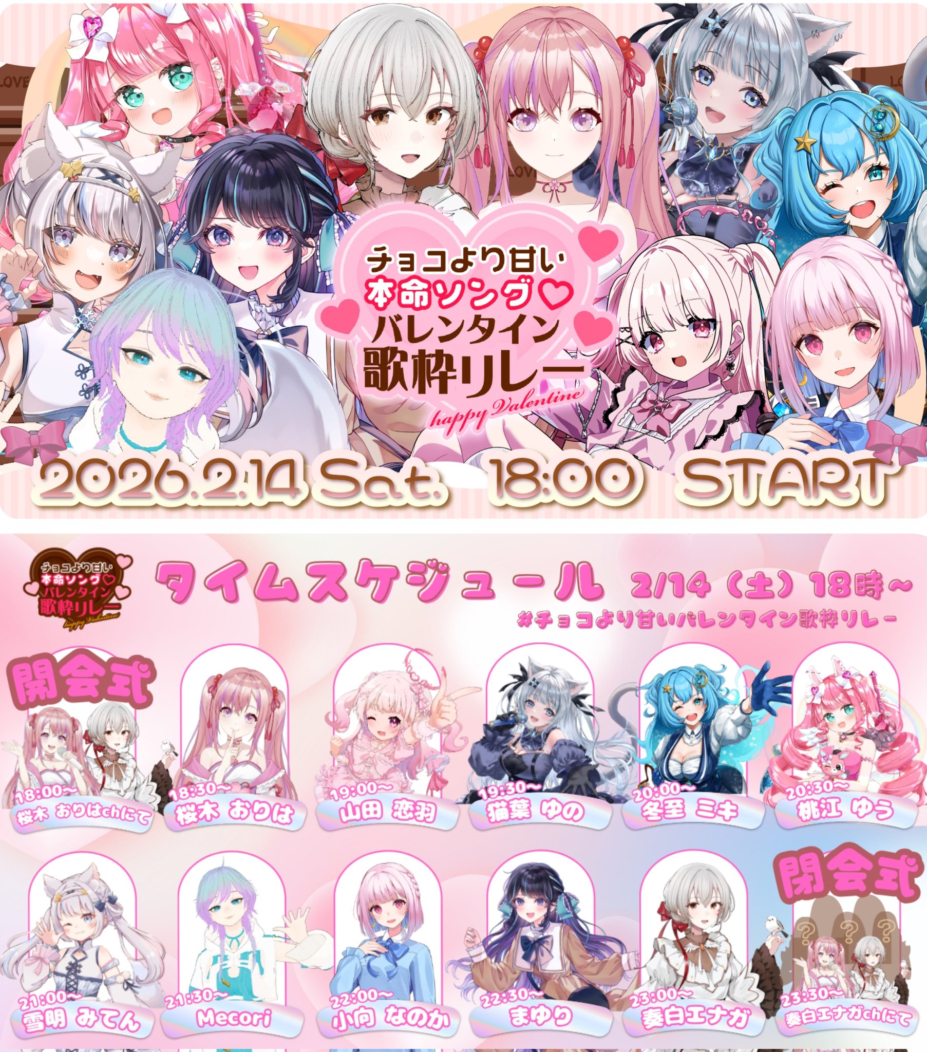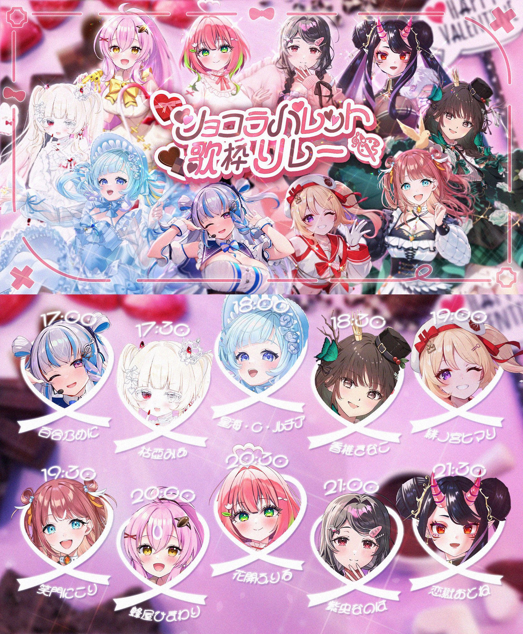 Valentine's Day Heroine Song Relay https://www.youtube.com/playlist?list=PLVg7jMxInrp8BD-zFXNEZLMXUnJ-3M0zlVsingers that want to keep Valentine's Day Going