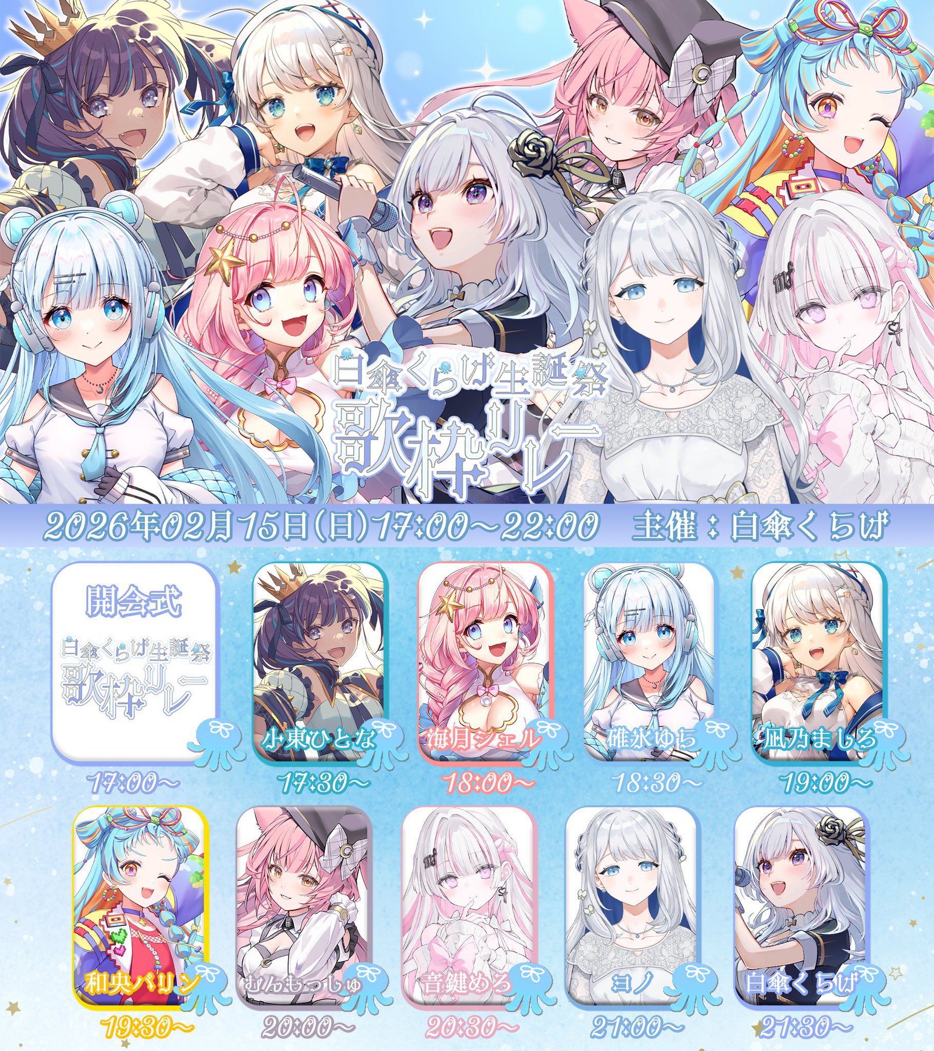 Shirakasa Kurage Birthday Song Relayhttps://www.youtube.com/playlist?list=PLQSMglufe--QtwBiCnivvUIoQTEwTlsnpHappy Birthday Kurage-chan!