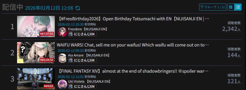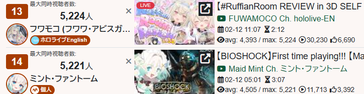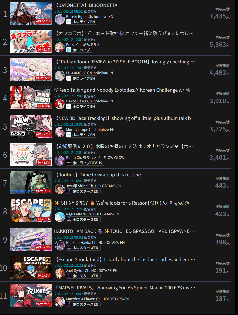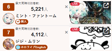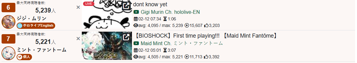 *GENERAL NUMBERFAG SITES*>https://playboard.co/en/>http://ikioi-ranking.com/>https://vrabi.net/>https://live-ranking.userlocal.jp/vtuber-rankingHololive sites>https://www.hololyzer.net/youtube/index.html>https://trackholo.live/en/>https://holo-spotify-stats.jirikunes.eu/Twitch>https://sullygnome.com/>https://twitchtracker.com/>https://stats.roki.sh/>https://streamscharts.com/