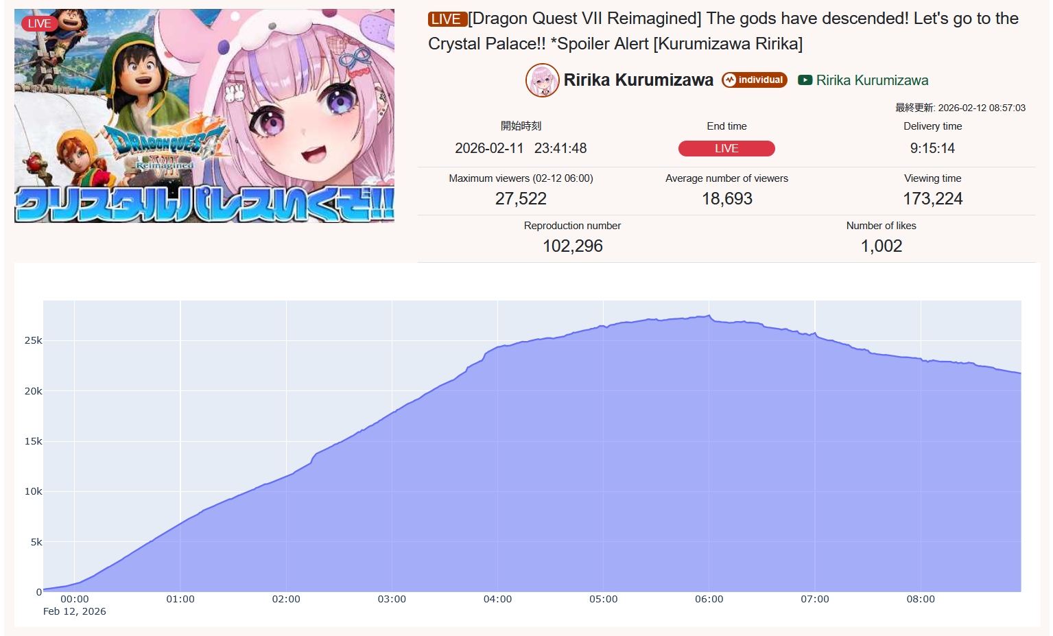 >>109384893130 now, also more likes and VOD views despite streaming for 2 hours less
