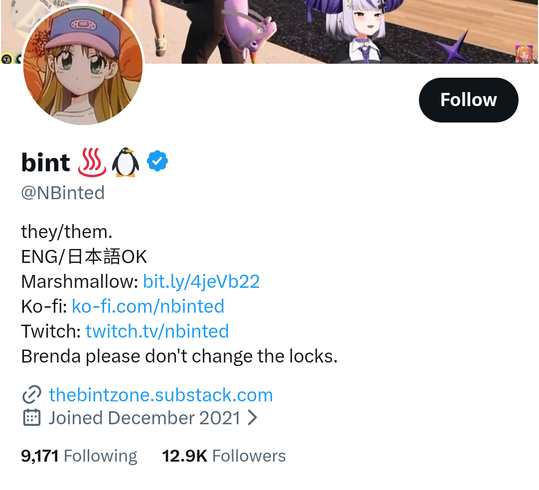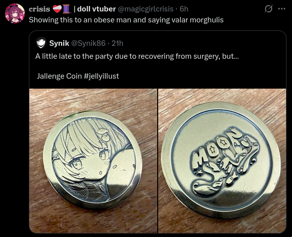 >>109387647>Almost all of these girls got a lukewarm reception at debut and now they all have dedicated followings.Yeah, I watch their debuts and was turned off by them but then started watching Bibi during the Mega Man 2 stream and she's actually really great. Funny, cheerful, high energy, and is always going on about creative hobbies and stuff. I've watched some of Malice and Willy's streams too and they actually are pretty good. The only thing I've noticed about Willy is that she plays challenging games (which is good) and tries to focus on melee combat because of her knight lore (which is also good) but her skills aren't quite up to par for doing melee-only runs of the games she chooses (which isn't like terrible, I don't mind cheering her on and it's fun to watch her succeed) but I feel like she might get slightly better results if she reworked that formula somehow.I haven't really fucked with Sinon cause I just get massive goonerbait vibes from her.