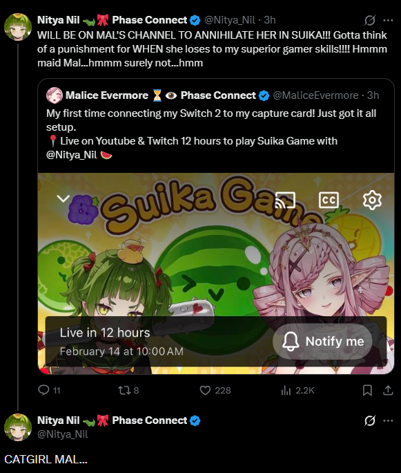 And after that in 8h the Malice collab.https://x.com/Nitya_Nil/status/2022298247071420751