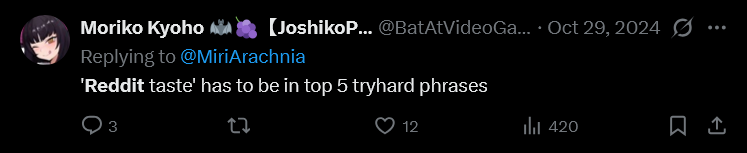 >>109403745You're randomly arguing that guy is boring and unattractive because a vtuber didn't send him a picture of her erect nipples