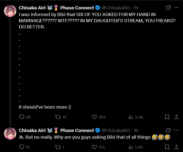 ▼ Phase Connect LinksOfficial Website: https://phase-connect.comOfficial Schedule: https://schedule.phase-connect.comOfficial Twitter: https://x.com/PhaseConnect | https://x.com/PhaseConnectJPOfficial Character References: https://rentry.org/pcgreferencesOfficial Twitch Archive Channels: https://rentry.org/pcgtwitcharchiveUnofficial Phase Connect Archives: https://rentry.org/pcgunofficialarchive––––––––––––––––––––––––––––––––––◆【Lia】https://x.com/rinkouashelia | https://youtube.com/RinkouAshelia | https://twitch.tv/asheliarinkou◆【Utatane Nasa】転寝ナサ (JP) https://x.com/UtataneNasa | https://youtube.com/UtataneNasa | https://twitch.tv/utatanenasa◆【Hakushika Iori】白鹿いおり (JP + EN) https://x.com/hakushikaiori | https://youtube.com/HakushikaIori | https://twitch.tv/iorihakushika◆【Fujikura Uruka】https://x.com/fujikurauruka | https://youtube.com/FujikuraUruka | https://twitch.tv/fujikurauruka◆【Shisui Michiru】紫翠みちる (JP) https://x.com/shisuimichiru | https://youtube.com/ShisuiMichiru | https://twitch.tv/michiru_shisui◆【Tenma Maemi】https://x.com/tenmamaemi | https://youtube.com/TenmaMaemi | https://twitch.tv/tenma◆【Pipkin Pippa】https://x.com/pipkinpippa | https://youtube.com/PipkinPippa | https://twitch.tv/pippa––––––––––––––––––––––––––––––––––◆【Kaneko Lumi】https://x.com/kaneko_lumi | https://youtube.com/KanekoLumi | https://twitch.tv/kanekolumi◆【Fuura Yuri】[Terminated] https://x.com/AmarisYuri | Archive: https://youtube.com/@TheNationalFuuraYuriArchive◆【Dizzy Dokuro】https://x.com/dizzydokuro | https://youtube.com/@dizzydokuro | https://twitch.tv/dizzydokuro◆【Jelly Hoshiumi】https://x.com/jellyhoshiumi | https://youtube.com/@jellyhoshiumi | https://twitch.tv/jellyhoshiumi◆【Ember Amane】https://x.com/emberamane | https://youtube.com/@EmberAmane | https://twitch.tv/emberamane◆【Clio Aite】https://x.com/ClioAite | https://youtube.com/@ClioAite | https://twitch.tv/clioaite◆【MariMari_en】https://x.com/MARIMARI_EN | https://youtube.com/@MARIMARI_EN | https://twitch.tv/marimari_en◆【Eepy Sleepy】https://x.com/EepySleepyCh | https://youtube.com/@EepySleepyCh | https://twitch.tv/EepySleepy––––––––––––––––––––––––––––––––––◆【Remilia Nephys】https://x.com/Remilia_Nephys | https://youtube.com/RemiliaNephys | https://twitch.tv/remilianephys◆【Chisaka Airi】https://x.com/ChisakaAiri | https://youtube.com/ChisakaAiri | https://twitch.tv/chisakaairi◆【Amanogawa Shiina】https://x.com/AmanogawaShiina | https://youtube.com/AmanogawaShiina | https://twitch.tv/amanogawashiina◆【Himemiya Rie】https://x.com/HimemiyaRie | https://youtube.com/HimemiyaRie | https://twitch.tv/himemiyarie◆【Erina Makina】https://x.com/ErinaMakina | https://youtube.com/ErinaMakina | https://twitch.tv/erinamakina◆【Komachi Panko】https://x.com/komachipanko | https://youtube.com/KomachiPanko | https://twitch.tv/komachipanko––––––––––––––––––––––––––––––––––◆【Runie Ruse】https://x.com/RunieRuse | https://youtube.com/@RunieRuse | https://twitch.tv/RunieRuse◆【Eimi Isami】https://x.com/eimiisami | https://youtube.com/@eimiisami | https://twitch.tv/eimiisami◆【Muu Muyu】https://x.com/Muu_Muyu | https://youtube.com/@MuuMuyu | https://twitch.tv/MuuMuyu◆【Hikanari Hina】https://x.com/HikanariHina | https://youtube.com/@HikanariHina | https://twitch.tv/HikanariHina◆【Saya Sairroxs】[Hort] https://x.com/sayasairroxs | https://youtube.com/@sayasairroxs | https://twitch.tv/sayasairroxs––––––––––––––––––––––––––––––––––◆【Kannagi Loki】巫ロキ (JP) https://x.com/kannagiloki | https://youtube.com/@kannagiloki◆【Kokoromo Memory】恋衣めもり (JP) https://x.com/kokoromomemory | https://youtube.com/@kokoromomemory_ | https://twitch.tv/kokoromomemory◆【Gram Pico】倉夢ぴこ (JP) https://x.com/grampico_ | https://youtube.com/@grampico | https://twitch.tv/grampico◆【Ayase Yuu】絢世ユウ (JP) https://x.com/ayaseyuuu | https://youtube.com/@ayaseyuu | https://twitch.tv/ayaseyuu_◆【Kaminari Clara】歌美鳴クララ (EN + JP) https://x.com/kaminariclara_ | https://youtube.com/@kaminariclara | https://twitch.tv/kaminariclara––––––––––––––––––––––––––––––––––◆【Malice Evermore】https://x.com/MaliceEvermore | https://youtube.com/@maliceevermore | https://twitch.tv/maliceevermore◆【Nitya Nil】https://x.com/Nitya_Nil | https://youtube.com/@Nitya_Nil | https://twitch.tv/nitya_nil◆【Wilhelmina Frost】https://x.com/wilhelminafr0st | https://youtube.com/@wilhelminafrost | https://twitch.tv/wilhelminafrost◆【Bibi Biscuit】https://x.com/BibiBiscuitCh | https://youtube.com/@bibibiscuitch | https://twitch.tv/bibibiscuitch◆【Anya Nyabyss】https://x.com/AnyaNyabyss | https://youtube.com/@AnyaNyabyss | https://twitch.tv/anyanyabyss◆【Sinon Sinfonia】https://x.com/SinonSinfonia | https://youtube.com/@SinonSinfonia | https://twitch.tv/sinonsinfoniaPrevious Thread: >>109396917