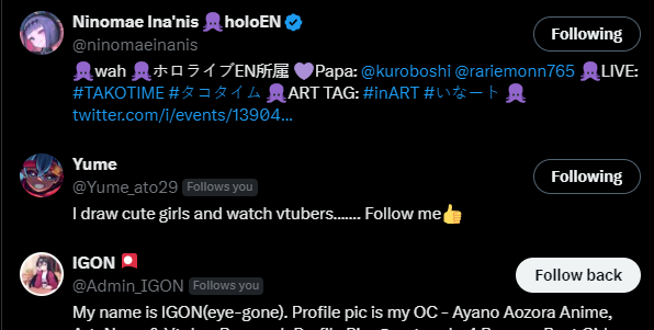 >>109458495She isn't following me but she gave me a like. I didn't realize I cut the top off the screenshot. Still feels great.