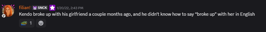 incoming schizo theory, but didn't someone a week or two ago mention that one of her friends around early 2023 (which is when she stopped hanging out with kendo) confessed his feelings for her and she turned him down. then she went full menhara on discord and deleted a bunch of her messages? (i'm not sure if any of this is true btw, and i don't claim it is, it's just what i remember reading)