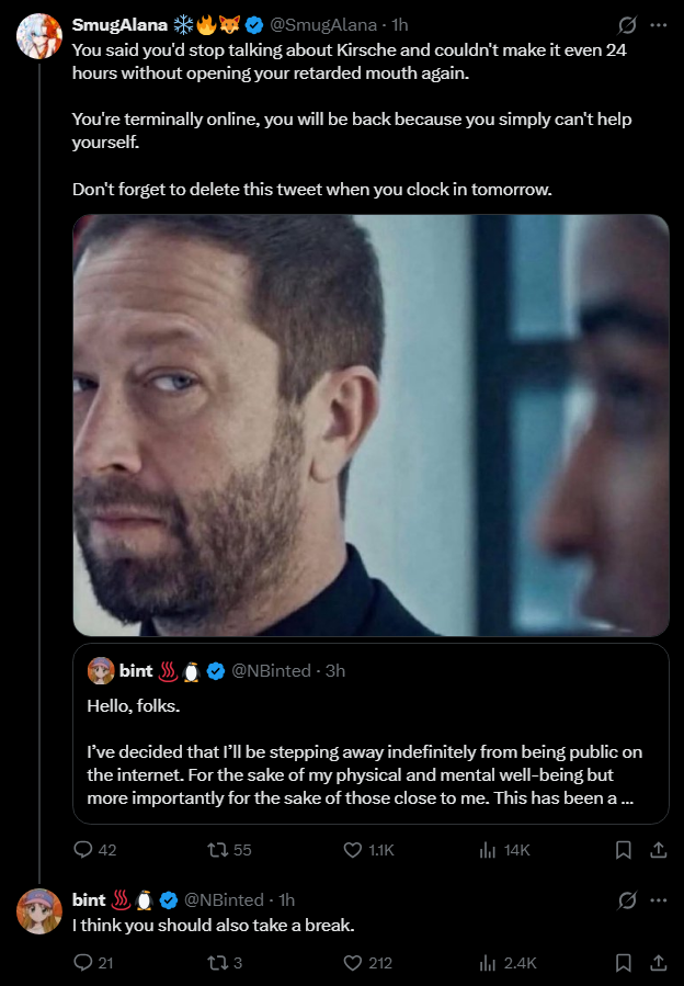 >>109428924Bint is correct that SmugAlana should take a break too