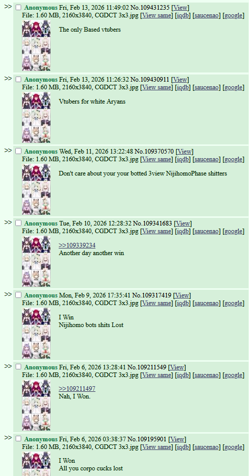 >>109436160Better start believing that one theory that says one of her antis /here/ genuinely believes she's Hololive material and Mori stole her place.