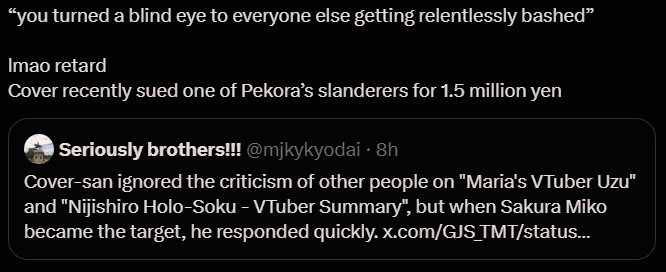 >>109436232>A talent breaks the law before joining Cover>''I can't believe cover did this....''NIgga...