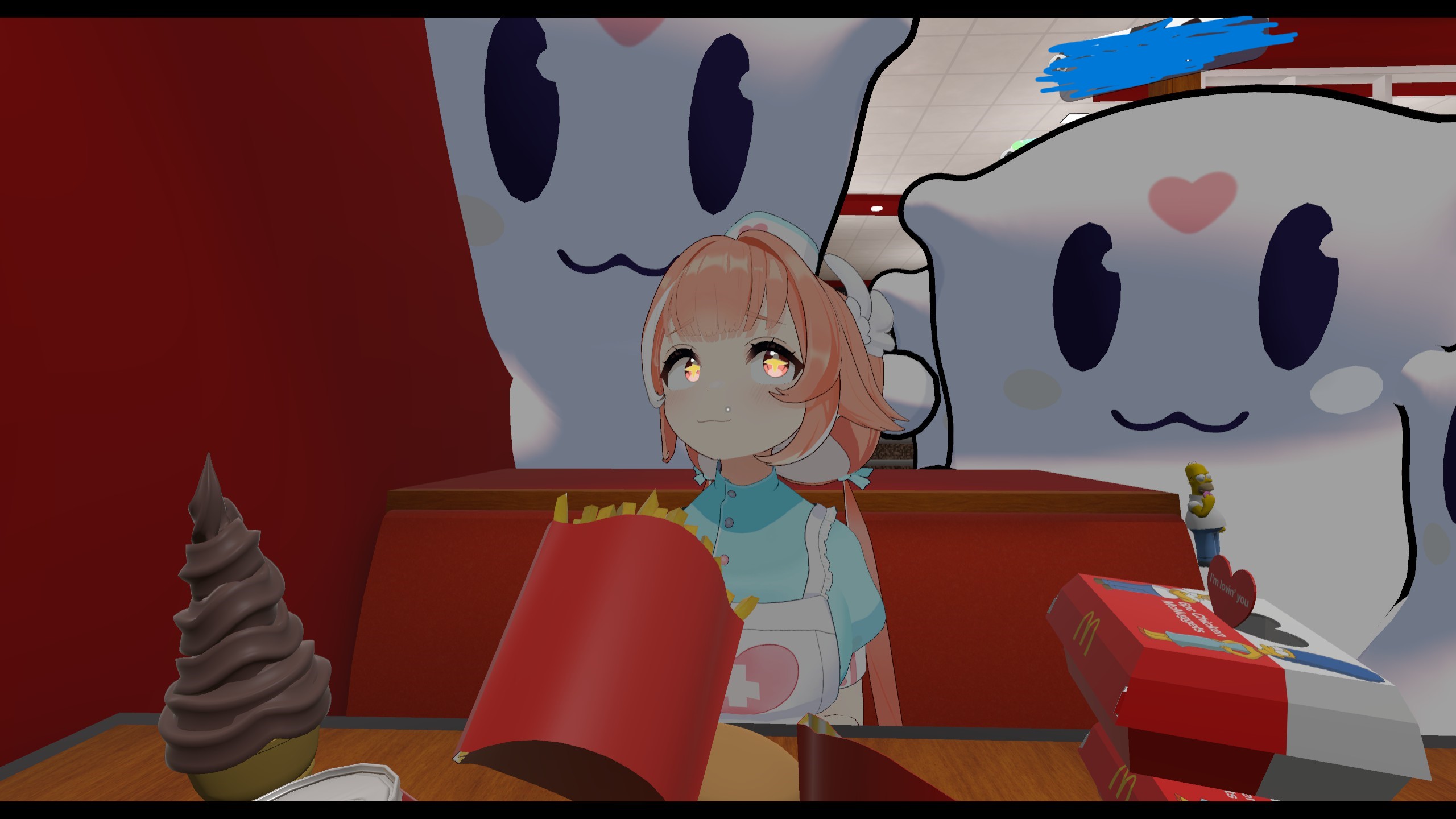 The girl who helped organize the event yesterday who was talking to the piwwos like actual children reminded me of those videos where the guy trolls the VRChat daycares.That game has such a dark aura. If not for Pillow I wouldn’t get within a 100 miles of it.