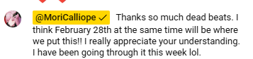 >3 peoppe have to drop out of the charity stream >gets sick the day before Mori really can't catch a break