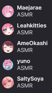 This thread is for the discussion and discovery of English-speaking female only VTubers who do ASMR.>Ongoing streamshttps://vt.rita.moe/?tag=genre:ASMR&tag=lang:Englishhttps://vt.rita.moe/?tag=thread:/tingles/https://asmrfarm.com/ (Mixed JP/EN)Rentry with useful information: https://rentry.org/tinglesveeteeVTuber ASMR playlists: https://www.youtube.com/@tinglesanonPrevious thread: >>109461462