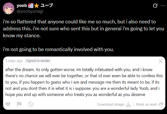 >>109484963>she doesn't want to date vtuber asmr fansMy opinion of her went up