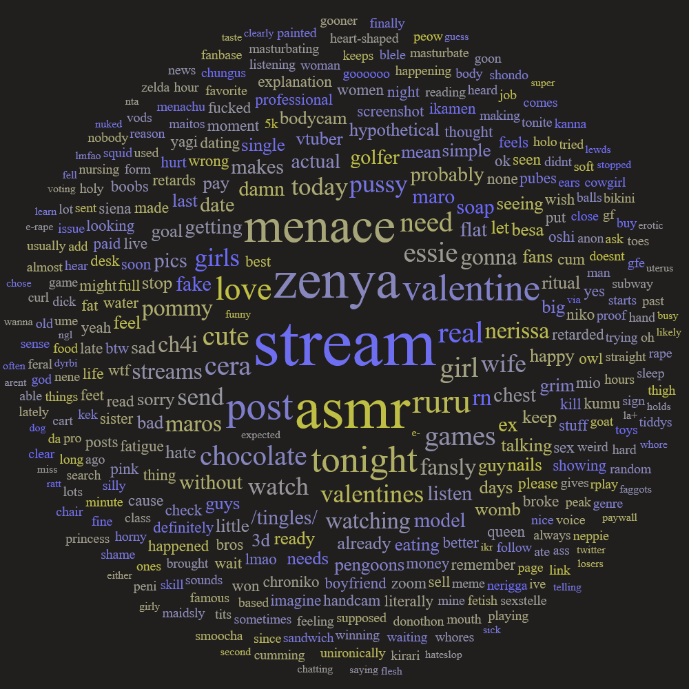 >hmm, what should I do for the valentine's day stream for my loyal fans...>oh I know, I'll make drunk realistic crying sounds while kissing the mic and say I'm sad that you didn't come rape me for valentine's day over and overWhat the actual fuck is wrong with Ruru?