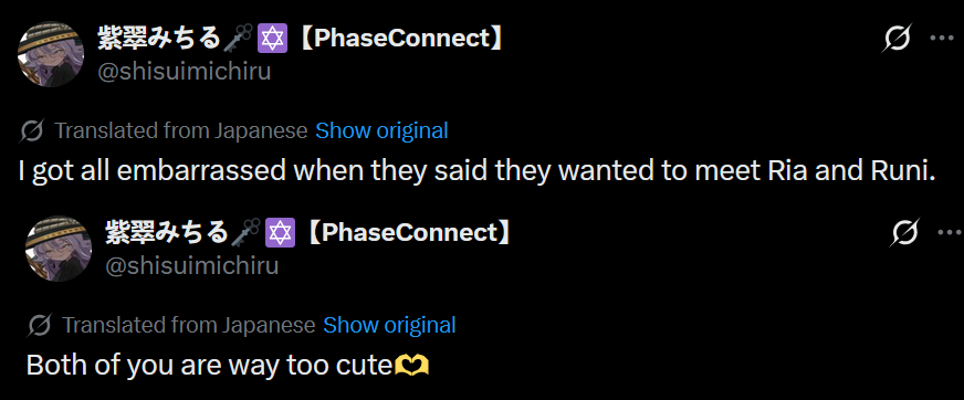 ▼ Phase Connect LinksOfficial Website: https://phase-connect.comOfficial Schedule: https://schedule.phase-connect.comOfficial Twitter: https://x.com/PhaseConnect | https://x.com/PhaseConnectJPOfficial Character References: https://rentry.org/pcgreferencesOfficial Twitch Archive Channels: https://rentry.org/pcgtwitcharchiveUnofficial Phase Connect Archives: https://rentry.org/pcgunofficialarchive––––––––––––––––––––––––––––––––––◆【Lia】https://x.com/rinkouashelia | https://youtube.com/RinkouAshelia | https://twitch.tv/asheliarinkou◆【Utatane Nasa】転寝ナサ (JP) https://x.com/UtataneNasa | https://youtube.com/UtataneNasa | https://twitch.tv/utatanenasa◆【Hakushika Iori】白鹿いおり (JP + EN) https://x.com/hakushikaiori | https://youtube.com/HakushikaIori | https://twitch.tv/iorihakushika◆【Fujikura Uruka】https://x.com/fujikurauruka | https://youtube.com/FujikuraUruka | https://twitch.tv/fujikurauruka◆【Shisui Michiru】紫翠みちる (JP) https://x.com/shisuimichiru | https://youtube.com/ShisuiMichiru | https://twitch.tv/michiru_shisui◆【Tenma Maemi】https://x.com/tenmamaemi | https://youtube.com/TenmaMaemi | https://twitch.tv/tenma◆【Pipkin Pippa】https://x.com/pipkinpippa | https://youtube.com/PipkinPippa | https://twitch.tv/pippa––––––––––––––––––––––––––––––––––◆【Kaneko Lumi】https://x.com/kaneko_lumi | https://youtube.com/KanekoLumi | https://twitch.tv/kanekolumi◆【Fuura Yuri】[Terminated] https://x.com/AmarisYuri | Archive: https://youtube.com/@TheNationalFuuraYuriArchive◆【Dizzy Dokuro】https://x.com/dizzydokuro | https://youtube.com/@dizzydokuro | https://twitch.tv/dizzydokuro◆【Jelly Hoshiumi】https://x.com/jellyhoshiumi | https://youtube.com/@jellyhoshiumi | https://twitch.tv/jellyhoshiumi◆【Ember Amane】https://x.com/emberamane | https://youtube.com/@EmberAmane | https://twitch.tv/emberamane◆【Clio Aite】https://x.com/ClioAite | https://youtube.com/@ClioAite | https://twitch.tv/clioaite◆【MariMari_en】https://x.com/MARIMARI_EN | https://youtube.com/@MARIMARI_EN | https://twitch.tv/marimari_en◆【Eepy Sleepy】https://x.com/EepySleepyCh | https://youtube.com/@EepySleepyCh | https://twitch.tv/EepySleepy––––––––––––––––––––––––––––––––––◆【Remilia Nephys】https://x.com/Remilia_Nephys | https://youtube.com/RemiliaNephys | https://twitch.tv/remilianephys◆【Chisaka Airi】https://x.com/ChisakaAiri | https://youtube.com/ChisakaAiri | https://twitch.tv/chisakaairi◆【Amanogawa Shiina】https://x.com/AmanogawaShiina | https://youtube.com/AmanogawaShiina | https://twitch.tv/amanogawashiina◆【Himemiya Rie】https://x.com/HimemiyaRie | https://youtube.com/HimemiyaRie | https://twitch.tv/himemiyarie◆【Erina Makina】https://x.com/ErinaMakina | https://youtube.com/ErinaMakina | https://twitch.tv/erinamakina◆【Komachi Panko】https://x.com/komachipanko | https://youtube.com/KomachiPanko | https://twitch.tv/komachipanko––––––––––––––––––––––––––––––––––◆【Runie Ruse】https://x.com/RunieRuse | https://youtube.com/@RunieRuse | https://twitch.tv/RunieRuse◆【Eimi Isami】https://x.com/eimiisami | https://youtube.com/@eimiisami | https://twitch.tv/eimiisami◆【Muu Muyu】https://x.com/Muu_Muyu | https://youtube.com/@MuuMuyu | https://twitch.tv/MuuMuyu◆【Hikanari Hina】https://x.com/HikanariHina | https://youtube.com/@HikanariHina | https://twitch.tv/HikanariHina◆【Saya Sairroxs】[Graduated] https://x.com/sayasairroxs | https://youtube.com/@sayasairroxs | https://twitch.tv/sayasairroxs––––––––––––––––––––––––––––––––––◆【Kannagi Loki】巫ロキ (JP) https://x.com/kannagiloki | https://youtube.com/@kannagiloki ◆【Kokoromo Memory】[Graduated] https://x.com/kokoromomemory | https://youtube.com/@kokoromomemory_ | https://twitch.tv/kokoromomemory◆【Gram Pico】倉夢ぴこ (JP) https://x.com/grampico_ | https://youtube.com/@grampico | https://twitch.tv/grampico◆【Ayase Yuu】絢世ユウ (JP) https://x.com/ayaseyuuu | https://youtube.com/@ayaseyuu | https://twitch.tv/ayaseyuu_◆【Kaminari Clara】歌美鳴クララ (EN + JP) https://x.com/kaminariclara_ | https://youtube.com/@kaminariclara | https://twitch.tv/kaminariclara––––––––––––––––––––––––––––––––––◆【Malice Evermore】https://x.com/MaliceEvermore | https://youtube.com/@maliceevermore | https://twitch.tv/maliceevermore◆【Nitya Nil】https://x.com/Nitya_Nil | https://youtube.com/@Nitya_Nil | https://twitch.tv/nitya_nil◆【Wilhelmina Frost】https://x.com/wilhelminafr0st | https://youtube.com/@wilhelminafrost | https://twitch.tv/wilhelminafrost◆【Bibi Biscuit】https://x.com/BibiBiscuitCh | https://youtube.com/@bibibiscuitch | https://twitch.tv/bibibiscuitch◆【Anya Nyabyss】https://x.com/AnyaNyabyss | https://youtube.com/@AnyaNyabyss | https://twitch.tv/anyanyabyss◆【Sinon Sinfonia】https://x.com/SinonSinfonia | https://youtube.com/@SinonSinfonia | https://twitch.tv/sinonsinfoniaPrevious Thread: >>109496992