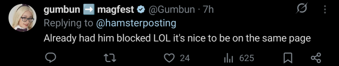 >>109503234It probably stung for cumbun when her oshi unfollowed her on X the everything app.