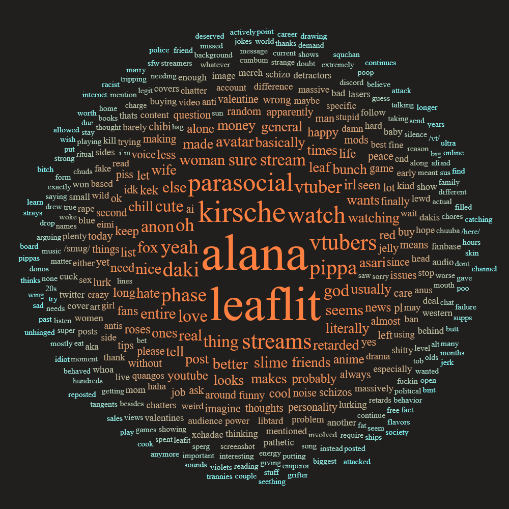 >>109513956There's also that fact that hiro created /vt/ to split off from /jp/ which at the time had a significant hololive presence.Now that both boards have been severely mismanaged, there's actually a bunch splinter generals on multiple altchans leaving /here/ nothing but SEAmonkeys.Also, many anons would like to see phase die because the ’ape loves phase connect, and recently admitted to personally everyone new who joins the staff on discord, so any sculpture of a moderation style you see is his sculpting…+ there's a shit ton allegations this anon made >>109506310It's not surprising that if the Canadian VTubing agency that sells coffee dies, most on /vt/ would consider it good news.