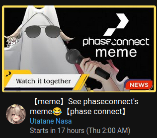 ▼ Phase Connect LinksOfficial Website: https://phase-connect.comOfficial Schedule: https://schedule.phase-connect.comOfficial Twitter: https://x.com/PhaseConnect | https://x.com/PhaseConnectJPOfficial Character References: https://rentry.org/pcgreferencesOfficial Twitch Archive Channels: https://rentry.org/pcgtwitcharchiveUnofficial Phase Connect Archives: https://rentry.org/pcgunofficialarchive––––––––––––––––––––––––––––––––––◆【Lia】https://x.com/rinkouashelia | https://youtube.com/RinkouAshelia | https://twitch.tv/asheliarinkou◆【Utatane Nasa】転寝ナサ (JP) https://x.com/UtataneNasa | https://youtube.com/UtataneNasa | https://twitch.tv/utatanenasa◆【Hakushika Iori】白鹿いおり (JP + EN) https://x.com/hakushikaiori | https://youtube.com/HakushikaIori | https://twitch.tv/iorihakushika◆【Fujikura Uruka】https://x.com/fujikurauruka | https://youtube.com/FujikuraUruka | https://twitch.tv/fujikurauruka◆【Shisui Michiru】紫翠みちる (JP) https://x.com/shisuimichiru | https://youtube.com/ShisuiMichiru | https://twitch.tv/michiru_shisui◆【Tenma Maemi】https://x.com/tenmamaemi | https://youtube.com/TenmaMaemi | https://twitch.tv/tenma◆【Pipkin Pippa】https://x.com/pipkinpippa | https://youtube.com/PipkinPippa | https://twitch.tv/pippa––––––––––––––––––––––––––––––––––◆【Kaneko Lumi】https://x.com/kaneko_lumi | https://youtube.com/KanekoLumi | https://twitch.tv/kanekolumi◆【Fuura Yuri】[Terminated] https://x.com/AmarisYuri | Archive: https://youtube.com/@TheNationalFuuraYuriArchive◆【Dizzy Dokuro】https://x.com/dizzydokuro | https://youtube.com/@dizzydokuro | https://twitch.tv/dizzydokuro◆【Jelly Hoshiumi】https://x.com/jellyhoshiumi | https://youtube.com/@jellyhoshiumi | https://twitch.tv/jellyhoshiumi◆【Ember Amane】https://x.com/emberamane | https://youtube.com/@EmberAmane | https://twitch.tv/emberamane◆【Clio Aite】https://x.com/ClioAite | https://youtube.com/@ClioAite | https://twitch.tv/clioaite◆【MariMari_en】https://x.com/MARIMARI_EN | https://youtube.com/@MARIMARI_EN | https://twitch.tv/marimari_en◆【Eepy Sleepy】https://x.com/EepySleepyCh | https://youtube.com/@EepySleepyCh | https://twitch.tv/EepySleepy––––––––––––––––––––––––––––––––––◆【Remilia Nephys】https://x.com/Remilia_Nephys | https://youtube.com/RemiliaNephys | https://twitch.tv/remilianephys◆【Chisaka Airi】https://x.com/ChisakaAiri | https://youtube.com/ChisakaAiri | https://twitch.tv/chisakaairi◆【Amanogawa Shiina】https://x.com/AmanogawaShiina | https://youtube.com/AmanogawaShiina | https://twitch.tv/amanogawashiina◆【Erina Makina】https://x.com/ErinaMakina | https://youtube.com/ErinaMakina | https://twitch.tv/erinamakina◆【Komachi Panko】https://x.com/komachipanko | https://youtube.com/KomachiPanko | https://twitch.tv/komachipanko––––––––––––––––––––––––––––––––––◆【Runie Ruse】https://x.com/RunieRuse | https://youtube.com/@RunieRuse | https://twitch.tv/RunieRuse◆【Eimi Isami】https://x.com/eimiisami | https://youtube.com/@eimiisami | https://twitch.tv/eimiisami◆【Muu Muyu】https://x.com/Muu_Muyu | https://youtube.com/@MuuMuyu | https://twitch.tv/MuuMuyu◆【Hikanari Hina】https://x.com/HikanariHina | https://youtube.com/@HikanariHina | https://twitch.tv/HikanariHina◆【Saya Sairroxs】[Graduated] https://x.com/sayasairroxs | https://youtube.com/@sayasairroxs | https://twitch.tv/sayasairroxs––––––––––––––––––––––––––––––––––◆【Kannagi Loki】巫ロキ (JP) https://x.com/kannagiloki | https://youtube.com/@kannagiloki◆【Kokoromo Memory】[Graduated] https://x.com/kokoromomemory | https://youtube.com/@kokoromomemory_ | https://twitch.tv/kokoromomemory◆【Gram Pico】倉夢ぴこ (JP) https://x.com/grampico_ | https://youtube.com/@grampico | https://twitch.tv/grampico◆【Ayase Yuu】絢世ユウ (JP) https://x.com/ayaseyuuu | https://youtube.com/@ayaseyuu | https://twitch.tv/ayaseyuu_◆【Kaminari Clara】歌美鳴クララ (EN + JP) https://x.com/kaminariclara_ | https://youtube.com/@kaminariclara | https://twitch.tv/kaminariclara––––––––––––––––––––––––––––––––––◆【Malice Evermore】https://x.com/MaliceEvermore | https://youtube.com/@maliceevermore | https://twitch.tv/maliceevermore◆【Nitya Nil】https://x.com/Nitya_Nil | https://youtube.com/@Nitya_Nil | https://twitch.tv/nitya_nil◆【Wilhelmina Frost】https://x.com/wilhelminafr0st | https://youtube.com/@wilhelminafrost | https://twitch.tv/wilhelminafrost◆【Bibi Biscuit】https://x.com/BibiBiscuitCh | https://youtube.com/@bibibiscuitch | https://twitch.tv/bibibiscuitch◆【Anya Nyabyss】https://x.com/AnyaNyabyss | https://youtube.com/@AnyaNyabyss | https://twitch.tv/anyanyabyss◆【Sinon Sinfonia】https://x.com/SinonSinfonia | https://youtube.com/@SinonSinfonia | https://twitch.tv/sinonsinfoniaPrevious Thread: >>109500655