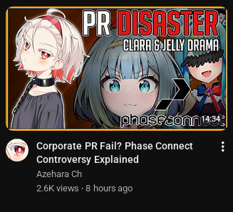 I like Jelly and ClaraI like hololive and phase connectBut on /vt/ I am forced to pick a side and people assume I'm on the other side whenever I disagree with them
