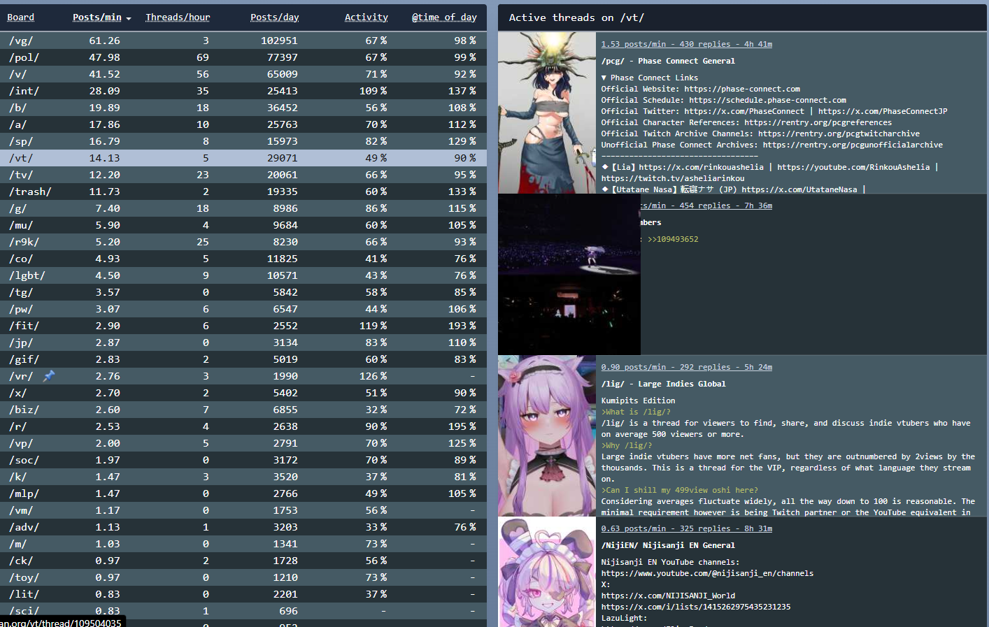 *GENERAL NUMBERFAG SITES*>https://playboard.co/en/>http://ikioi-ranking.com/>https://vrabi.net/>https://live-ranking.userlocal.jp/vtuber-rankingHololive sites>https://www.hololyzer.net/youtube/index.html>https://trackholo.live/en/>https://holo-spotify-stats.jirikunes.eu/Twitch>https://sullygnome.com/>https://twitchtracker.com/>https://stats.roki.sh/>https://streamscharts.com/