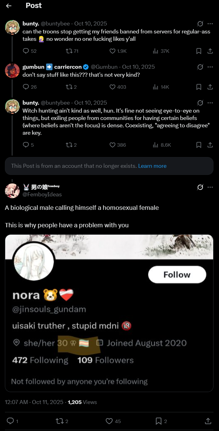 Yeah man, Eimi would be so much happier around of bunch of drama-hungry, angry chuds instead of others that think like her. Why can't you faggots leave anyone you deem "wrongthink" alone?