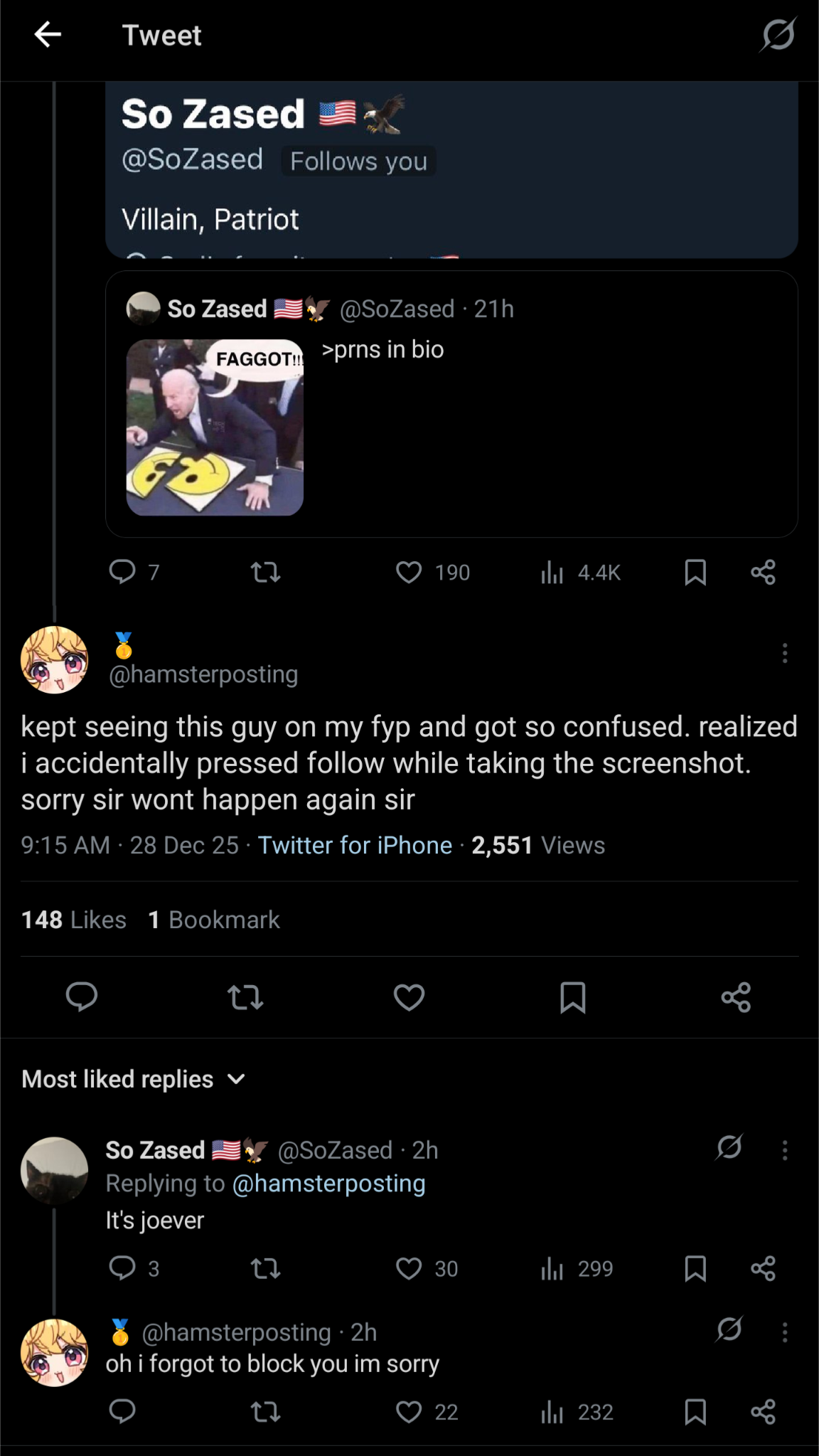 >>109526655He fell for the "Lumi amwf" bot posts and got too cocky, then when people started finding clips of Lumi saying she doesn't like Asian men/prefers white men he had a mental break because he was wrong again.