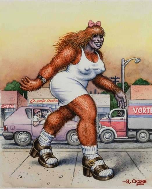 >>109539442Looks like women bodies with animal facesIt's Crumb's way of dehumanizing women