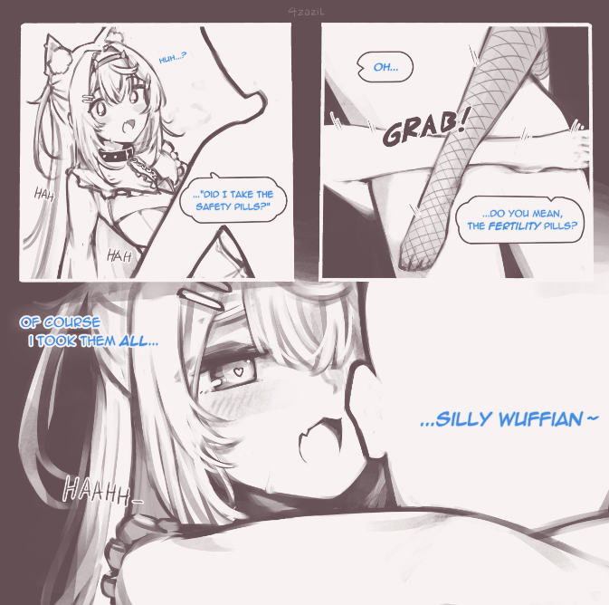 >reads a SC of someone telling her that "any guy would be lucky to be with her" and she immediately replies by implying that she is basically married to the Ruffians>gets really excited every time she sees the Ruffians>her body gets hot when she thinks about the Ruffians https://youtu.be/t7qzTPw9ybk?t=1285>"Wuffians... BAU BAU~">"You are starting to sound like my grandma"? You know, your grandma loves you and... eheheh BAU BAU~ https://youtu.be/3UaWl_t3nUM?t=1149>she is always thinking about Ruffians>constantly tries to seduce Ruffians with her erotic body>flashes her underwear to the Ruffians multiple times, making sure that the camera (Mococo) catches it for everyone to see>gets upset when a Ruffian tells her that he only loves her "platonically">says on stream that she wants to pull down the pants of the Ruffians>gets disappointed when a Ruffian gets horny for other women https://youtu.be/t7qzTPw9ybk?t=13819s>talks about the Ruffians with Mama Puppy all the time>Mama Puppy thinks the world of the Ruffians thanks to the things Fuwawa told her, and she is not worried about her daughters because she knows that the "Ruffians are kind to her girls" https://youtu.be/t7qzTPw9ybk?t=5995>I want YOU wuffians https://youtu.be/aNq_RB-r_dw?t=3967