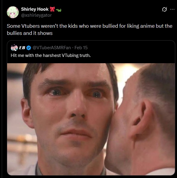 >>109547162Veibae is the one that sticks out instantly. Indies in general are a mixed bag, I don’t really think people like Numi or Bao were mean people in school.Current and former small corpo vtubers are definitely the ones who fit this category the best though and I don’t know why. You can tell that half of Phase were massive bitches in high school, other mentions goes to Mozzu and Menace, those two deserve each other.For the two big corpos, I think they’re similar to indies to this regard, but the extremes skew the distribution slightly. Enna is actually just crazy and Kiara does give out mean energy, and not in the sexy kind of way either.
