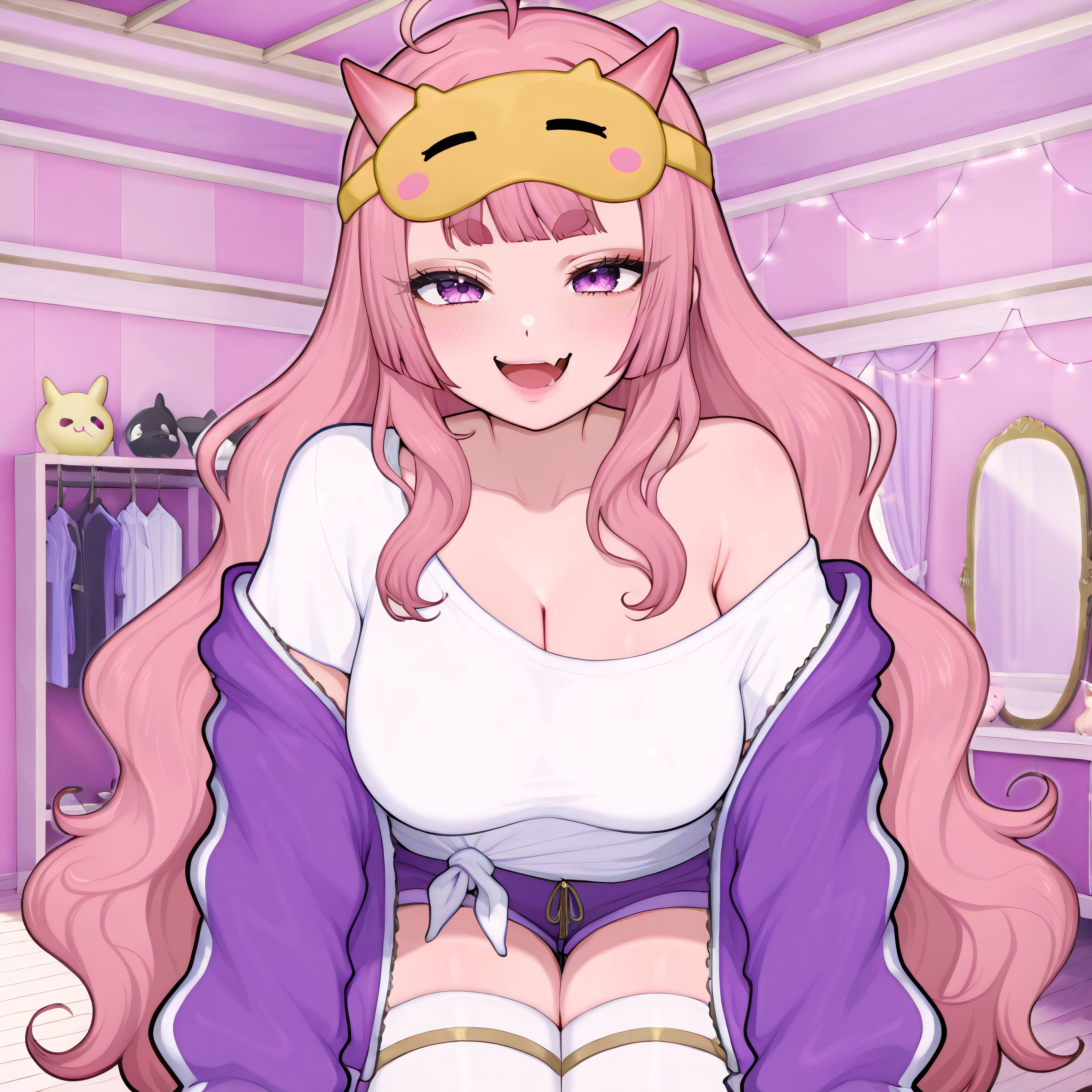 >>109546657The Kijo LoRA is a 3-in-1 of each of her outfits so far.https://files.catbox.moe/dnq2qn.safetensorsKimono triggers: Kijori Konno, bangs, black kimono, cleavage, earrings, hair flower, hair ornament, hair rings, Japanese clothes, jewelry, large breasts, long hair, long sleeves, obi, oni horns, pink hair, platform shoes, pointy ears, purple eyes, purple flowers, purple footwear, rope, sash, short eyebrows, skin fang, thick eyebrows, thighs, twintails, white thighhighs, wide sleeves, zettai ryouiki,Sporty triggers: Kijori Konno, sporty outfit, bangs, bare shoulders, big ass, black knit sweater, black short shorts, bra strap, cleavage, collarbone, hair ornament, earrings, hair flower, hair rings, jewelry, large breasts, long hair, long sleeves, off-shoulder sweater, oni horns, pink hair, platform shoes, pointy ears, purple eyes, purple flowers, purple footwear, short eyebrows, skin fang, thick eyebrows, thighs, twintails, white thighhighs, zettai ryouiki,Pajama triggers: Kijori Konno, pajama outfit, ahoge, bangs, bare shoulder, cleavage, collarbone, large breasts, mask on head jacket, oni horns, open jacket, pink hair, purple eyes, purple jacket, purple short shorts, short eyebrows, short sleeves, single bare shoulder, single off shoulder, skin fang, sleep mask, slightly wavy hair, t-shirt, thick eyebrows, thighs, tied shirt, very long hair, white shirt, white thighhighs, zettai ryouiki,The Zuri one is extremely stiff, because as I was making it, I realized that she doesn't have anything in her art tag. So it's made purely from screenshots and the group art that the V2V Xitter posted - https://files.catbox.moe/ejjyo0.safetensorstrigger: Zuri Fuyuki, animal ear fluff, animal ears, bangs, bare shoulders, barefoot, belly chain, cleavage, crop top, fox ears, fox girl, fox tail, hair between eyes, hair intakes, hair ornament, jewelry, long hair, medium breasts, midriff, multiple tails, navel, pearl (gemstone), pink hair, pink nails, purple eyes, red dress, red hair bow, seashell, see-through animal ears, see-through tails, silver anklet, silver bracelet, silver thighlet, stomach,I'll likely get around to remaking the Ashie one at some point once her sleepwear outfit is done and rigged. Milz if I feel like it at some point, haven't looked at her art tag yet.