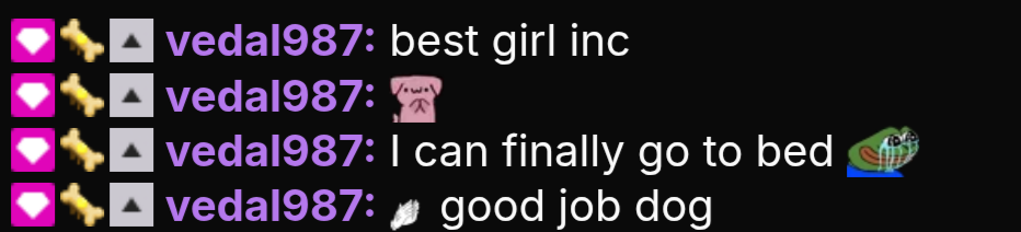 >>109548770I posted these logs as a joke man. She wasn't fucking serious back then. This is just how she was as a chatter. If you ever find logs of anny's or camila's chat in 2023, vedal's logs aren't exactly clean either