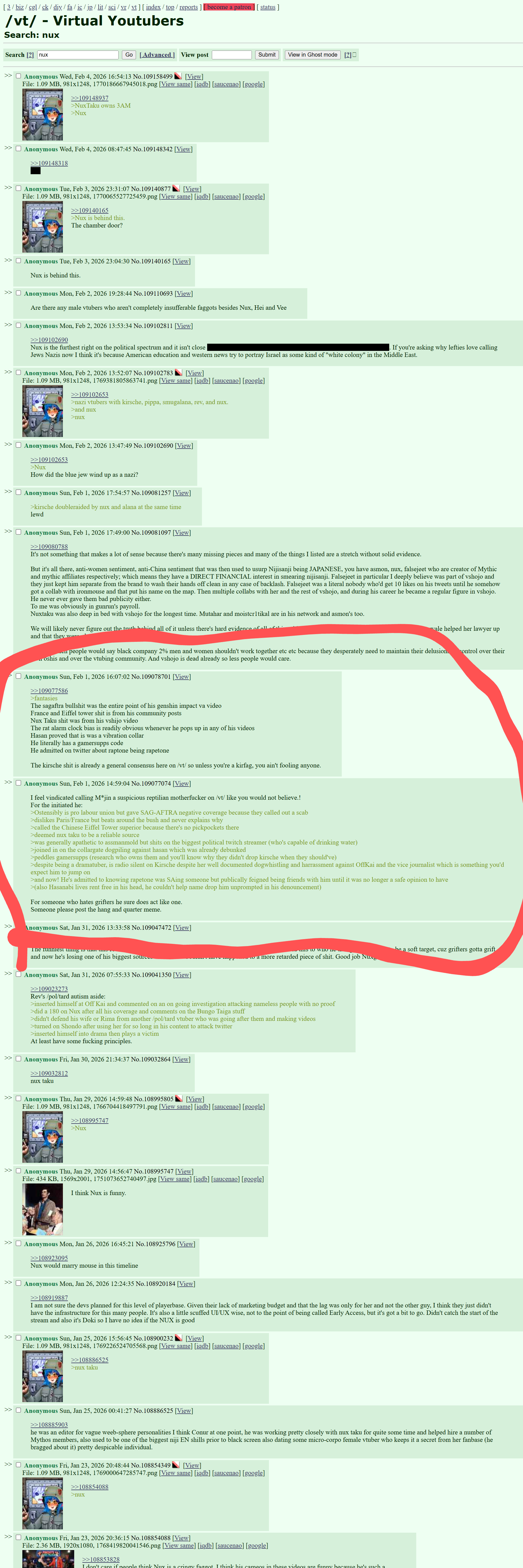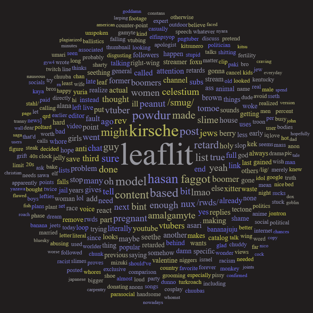 >>109548023>>109548127It's plausible because they both use commonwealth spelling (I'm a leaf, so me too).Remember when an anon asked me if I'm going to post the gas chamber pic every time someone name drops Nux Taku, and another anon spotted the Kirsche anti getting assblasted at Mujin in a different thread?Like bint he:>He spells it "labour union" (commonwealth spelling)>Is a pronoun respector>Hates Kirsche>hates asmongold>Is probably a leftist too>went in record saying they love Squchan>is a hasanabi drone>thought collargate was a hoax>accused her of being a glowie plant>ai art tag argumentUnlike bint he:>didn't hate Mujin until after the tectone protective order (before that he'd call him suspicious)>ostensibly loves Leaflit and SmugAlana>hates the theburntpeanut while bint was/is apathetic to himUnless bint was felt the need to LARP with a slightly different persona, I find it more likely that the Kirsche anti simply copied bint's talking points rather than being bint himself.