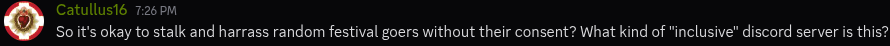 >>109551938>No, every action they take is more fuel for these dramafaggots.Anon I'm not saying they should ban her from the Discord. I'm saying they shouldn't promote her anymore. They should never make her a sponsored cosplayer again or share pictures of her. They should ignore her entirely, plain and simple. Then both sides have nothing to react to. If Gumbun makes a stink about a silent blacklisting she will look like a spoiled brat and nothing more.