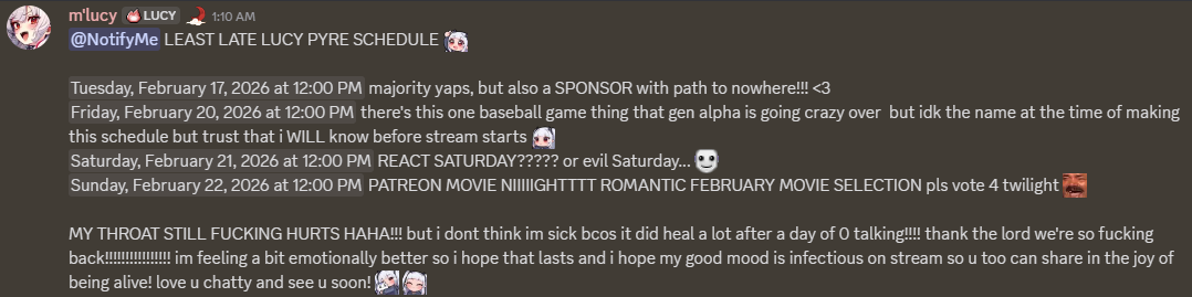Lucy posted her schedule