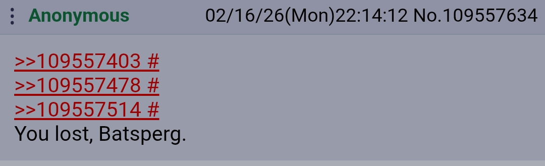 >>109557403>>109557478>>109557514You lost, Batsperg.