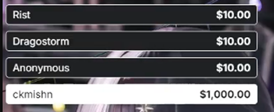 >>109576752She just requested the donators to have shorter names so that she can write inside the grem, only for this guy to do this