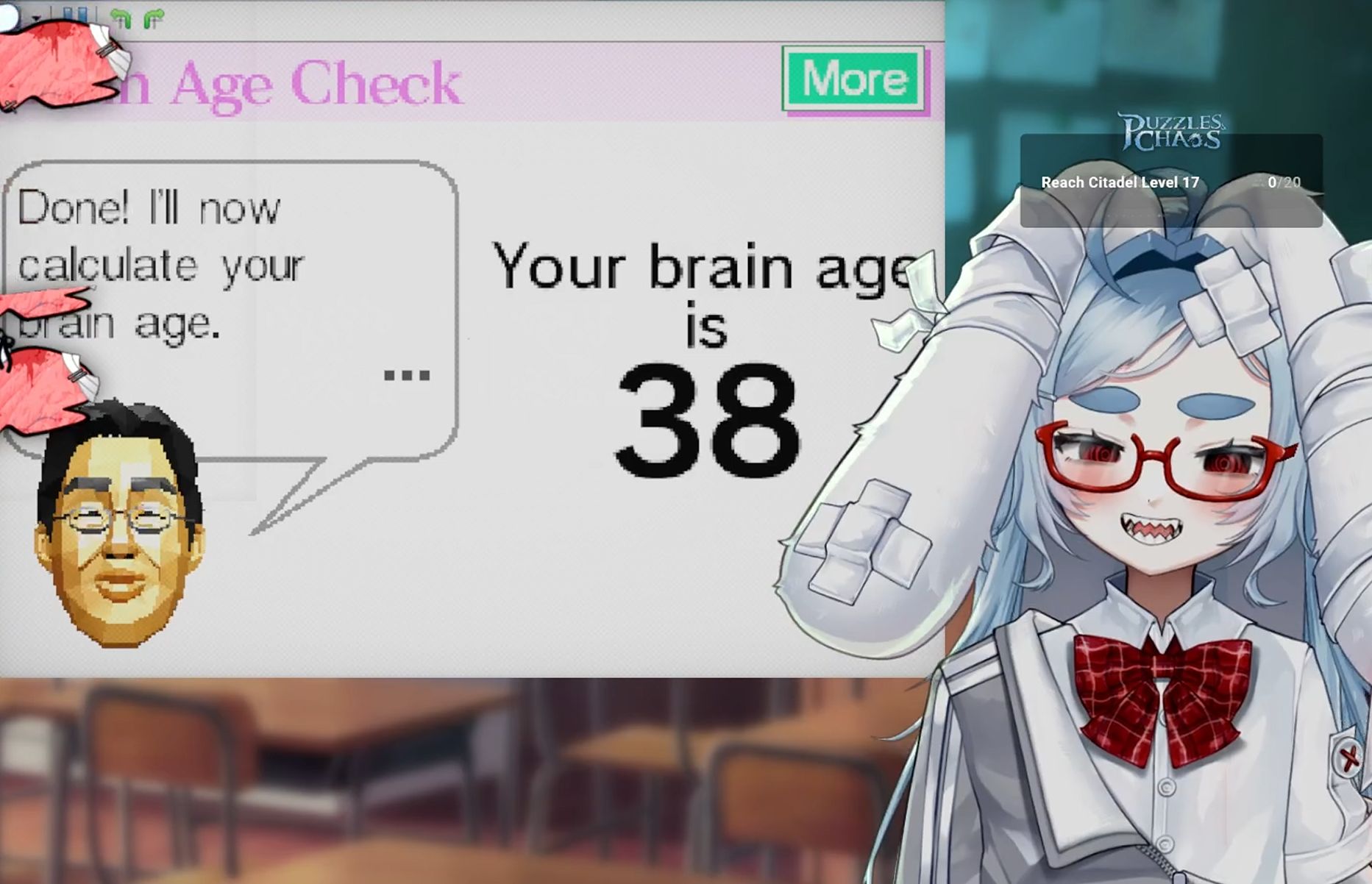 Para wanted to test her brain age again after the pazzles. Doesn't look like they helped much. Ending now to go back to the 3D mines.