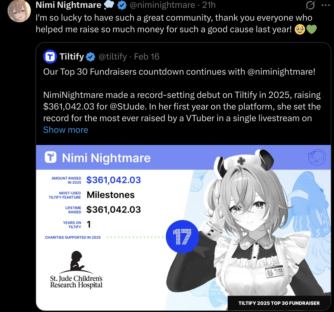 >Jurard>Does a charity stream to donate to help filipinos>Mori and the rest of EN>Does charity for muh animols