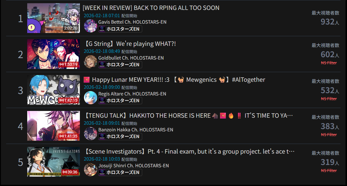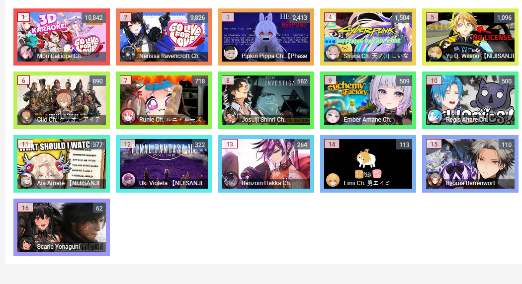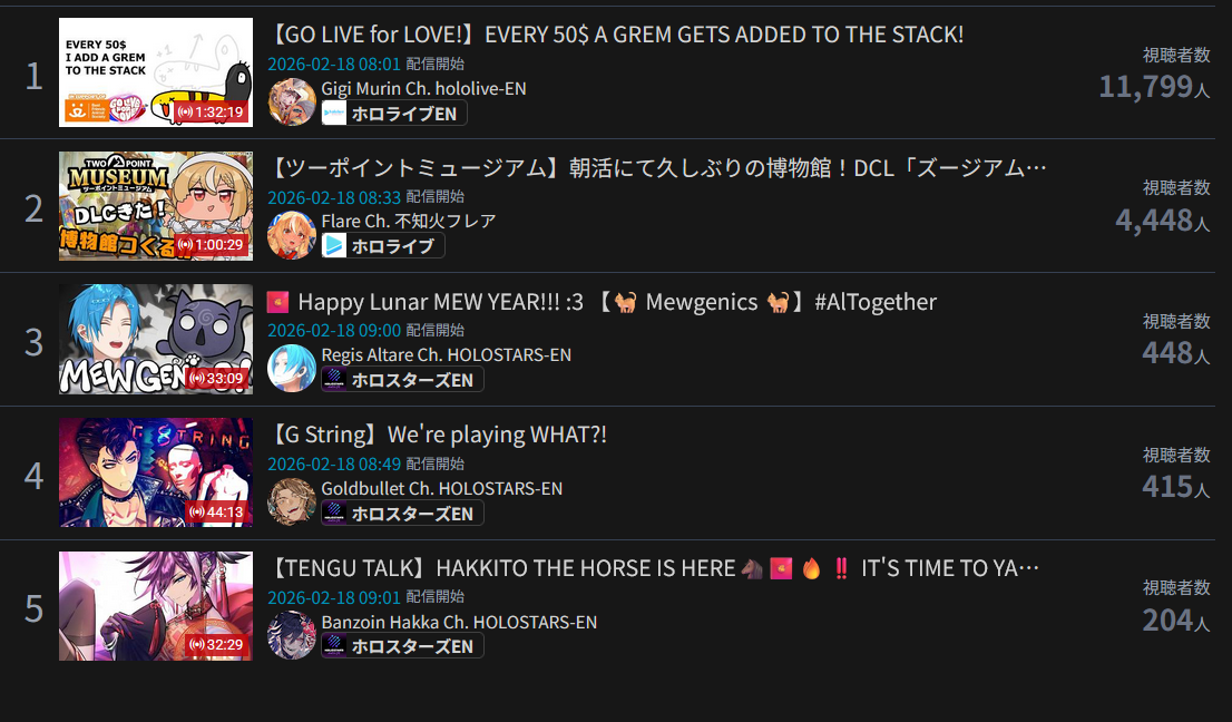 *GENERAL NUMBERFAG SITES*>https://playboard.co/en/>http://ikioi-ranking.com/>https://vrabi.net/>https://live-ranking.userlocal.jp/vtuber-rankingHololive sites>https://www.hololyzer.net/youtube/index.html>https://trackholo.live/en/>https://holo-spotify-stats.jirikunes.eu/Twitch>https://sullygnome.com/>https://twitchtracker.com/>https://stats.roki.sh/>https://streamscharts.com/