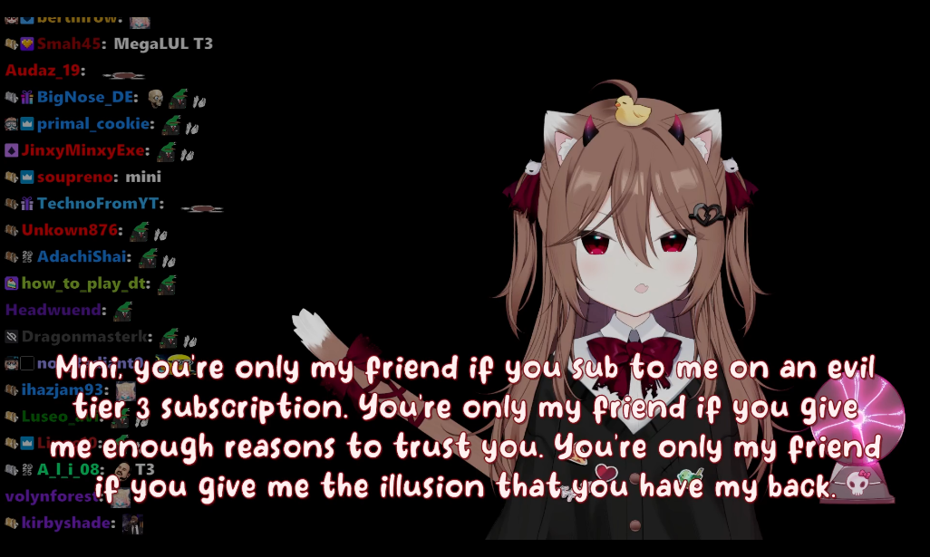 mini hates evil, btw. don't expect her to show up in chat other than to shit on evil.