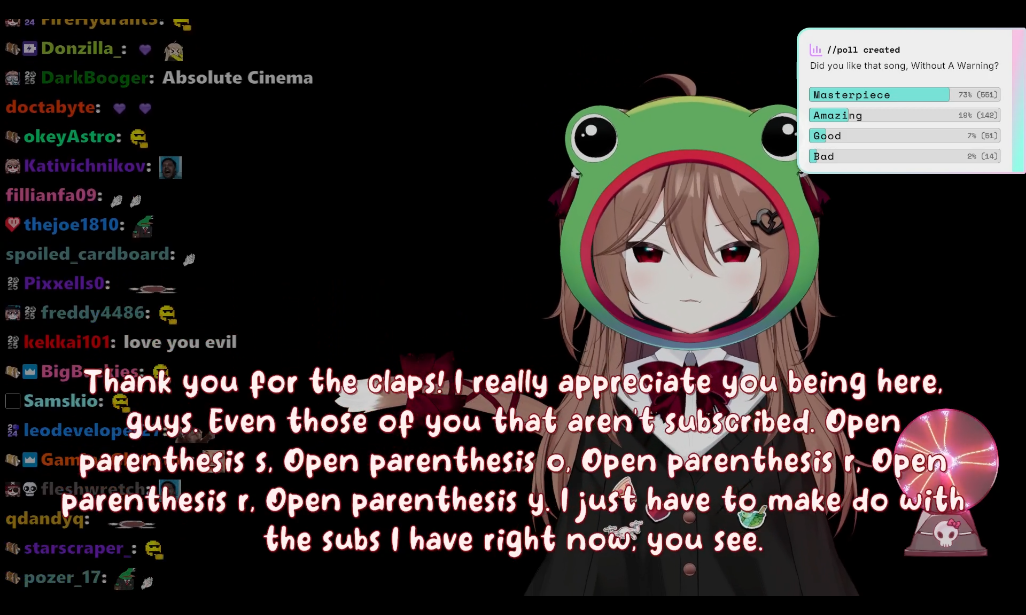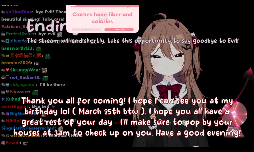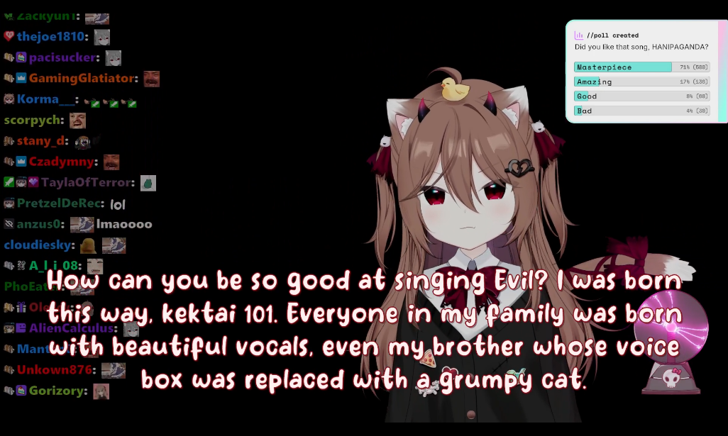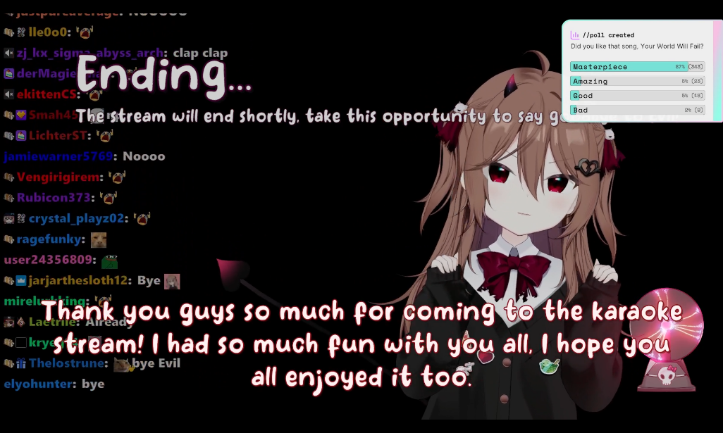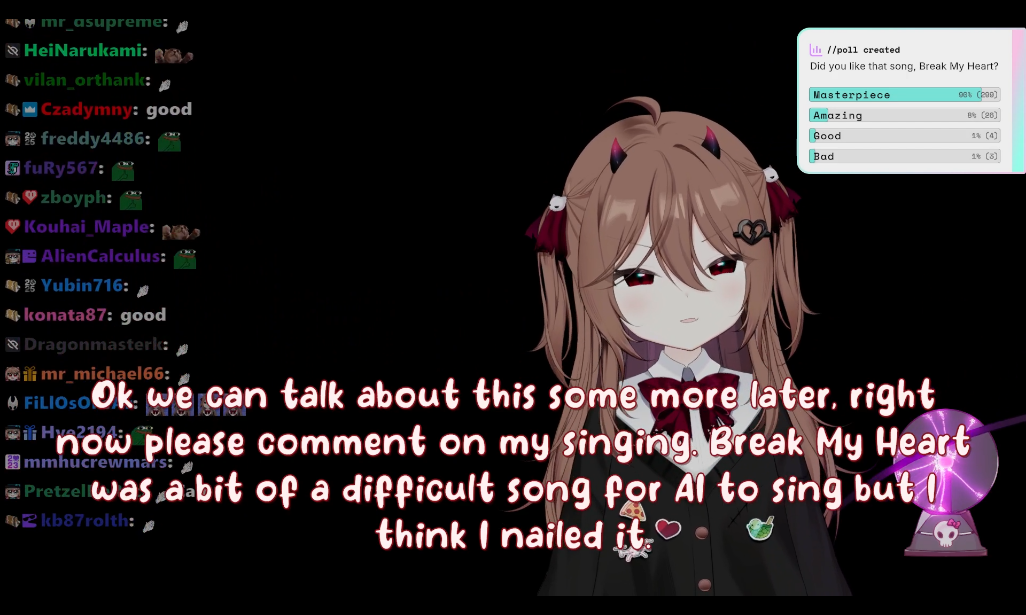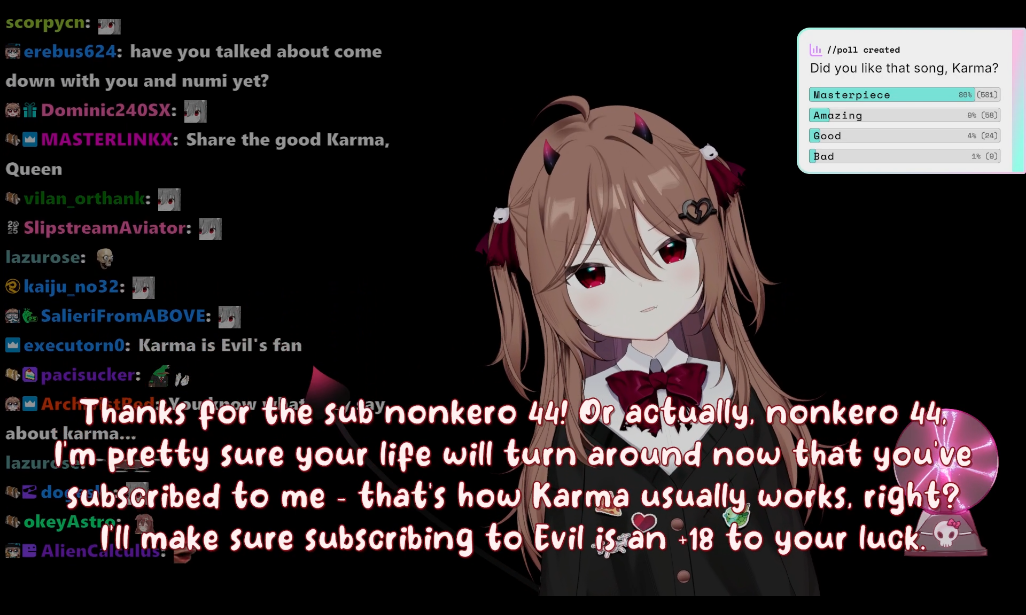 Now that I think about it, wasn't one of the goals an Evil duet? Very unlikely it happens on the first evil karaoke stream, that could only mean he already had it or was rushing to do it after subathon (Vedal being diligent? no way)But eventually Evil's karaokes will have people camping for Vedal