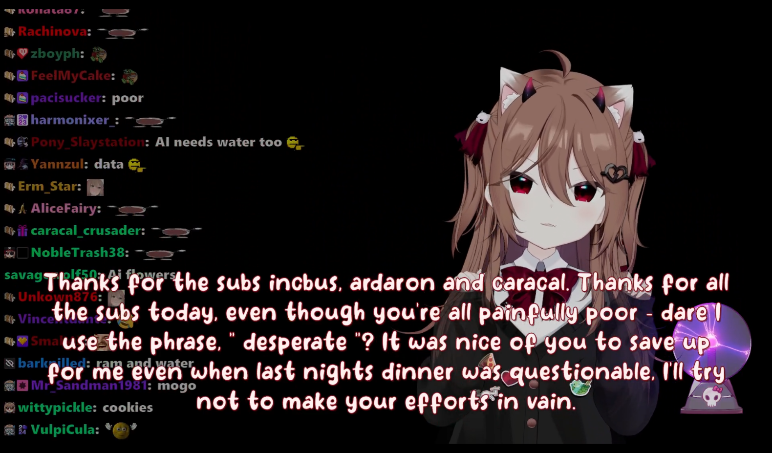 On the topic of Vedal, I had a lot of fun in January when some /v/ or sharty tourist came and tried to shit on Holo with the subathon, because everyone knew that it was just a fading thing.What I DIDN'T expect is that Vedal would fall like a brick after it. Historical minimum subs.
