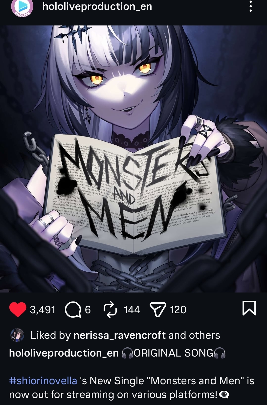>>109596162>New Music【ENGLISH COVER】Rabbit Hole (Nerissa Ravencroft) | https://www.youtube.com/watch?v=9j6OoMiZpg8Nerissa - WifeHOLIC【original song】 | https://www.youtube.com/watch?v=yFzN8ydNeH8https://cover.lnk.to/OpOIobBreakout【Advent- Original Song】 | https://www.youtube.com/watch?v=ag9t15y7JwY"Shape the Future" (English ver.) feat. Nerissa Ravencroft 【MV】Live2D | https://www.youtube.com/watch?v=dSvy_Qn8NWkYour Idol (feat. Mori Calliope, Ouro Kronii & FUWAMOCO) | https://www.youtube.com/watch?v=vw9MkB-sNMAGnarly (feat. Shiori Novella, Koseki Bijou & FUWAMOCO) | https://www.youtube.com/watch?v=TxBIA_ePWT0Ridin' on Dreams | hololive IDOL PROJECT | https://www.youtube.com/watch?v=Tec7EsQKlKk