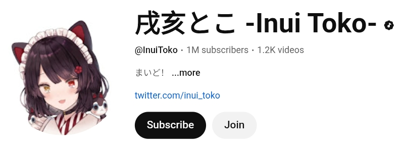 Inui Toko has reached 1 million subscribers.